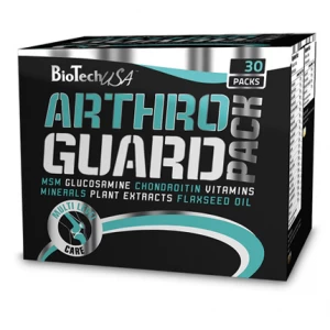 Arthro Guard Pack kombiniert die Kraft verschiedener Substanzen für eine umfassende Pflege der Gelenke und Knochen. Seine einzigartige Formel enthält 1000 mg Glucosaminhydrochlorid, 1000 mg Chondroitinsulfat, 1000 mg Methylsulfonylmethan (MSM) und 500 mg Leinöl. 1 Dosis enthält: - 2 Glucosamin Plus Tabletten mit hochdosiertem Glucosamin, Chondroitin und MSM - Multikräutertablette mit natürlichen Kräuterextrakten - Multivitaminkapsel mit wichtigen Spurenelementen wie Vitamin C, Zink und Mangan - Weichgelatinekapsel mit Leinsamenöl