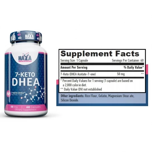 Haya Labs 7-KETO DHEA 50mg ist ein Spezialpräparat, das die einzigartige Substanz 7-Keto DHEA enthält. Seine Popularität beruht auf wissenschaftlichen Fakten - klinische Studien haben seine Wirksamkeit bei der Förderung der Gewichtsabnahme, der Beschleunigung des Stoffwechsels und der Verbesserung der Schilddrüsenfunktion bestätigt.