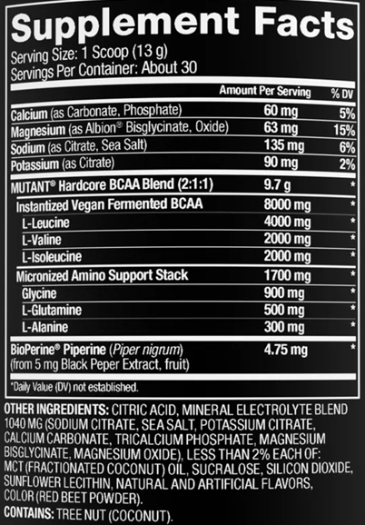 This electrolyte blend is from seven high-quality sources, including the branded ingredient Albion® Bisglycinate. During training, proper hydration can mean the difference between an epic workout – and crapping out. The key electrolytes in Hardcore BCAAs can support optimal fluid balance in the body during intense workouts, which guards against many adverse outcomes like muscle cramps, spasms, weakness, headaches, reduced stamina, reduced strength, and increased post-exercise muscle soreness. Also, remember that the harder you workout, the faster you lose electrolytes through sweat. Never leave home without your Hardcore BCAA!