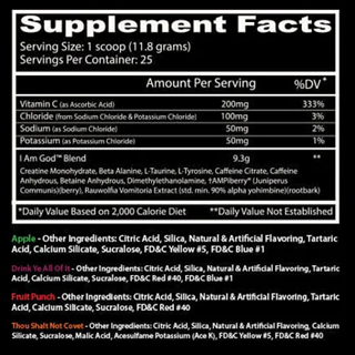 INSANE ENERGY AND ENDURANCE - One of the strongest pre-workouts ever created, I am God is formulated to push your workout limits. Loaded with caffeine, DMAE, and Beta-alanine, this high stim pre-workout will increase your stamina, endurance, and strength on a godly level.