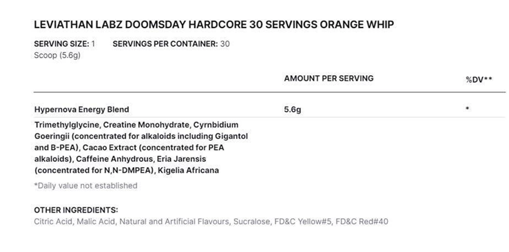 Active ingredients of the Leviathan Labz Doomsday Hardcore booster