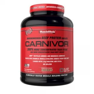 Carnivor is composed of beef protein isolate, and it's 350% more concentrated than steak - and more concentrated than whey isolate! If you need a product with zero fat, cholesterol, or sugar, and you want beef, here's your chance - Carnivor. Carnivor - the world's first beef protein isolate!