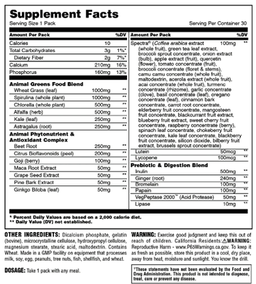 Animal greens is nothing short of amazing. It is a complete, optimally calibrated and balanced antioxidant-rich nutrition powerhouse. It perfectly dials in and delivers a novel formula based on well researched natural compounds found in greens like kale, wheat grass, alfalfa, Spirulina, chlorella and more. No longer for the nuts and berry types, strength Athletes everywhere, of every kind now know the value of eating your veggies - These potent veggies.